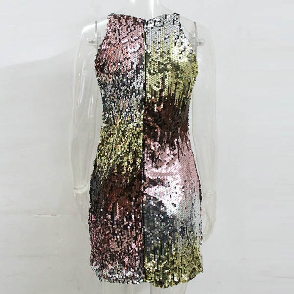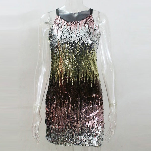 soft material, with round-neck,sleeveless and slim fit design.The paillette pattern design