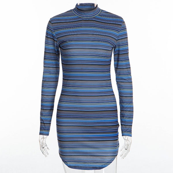 Giving you a new fashionable look through wearing this striped dress.Its round neck style,with slim fit and