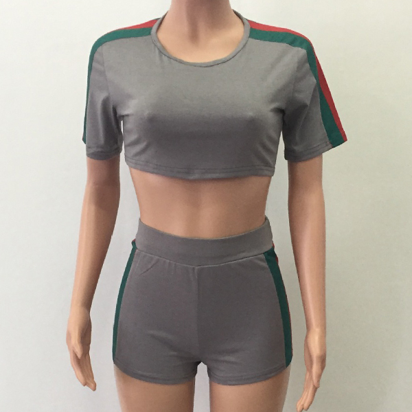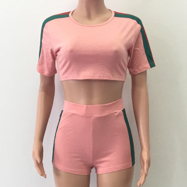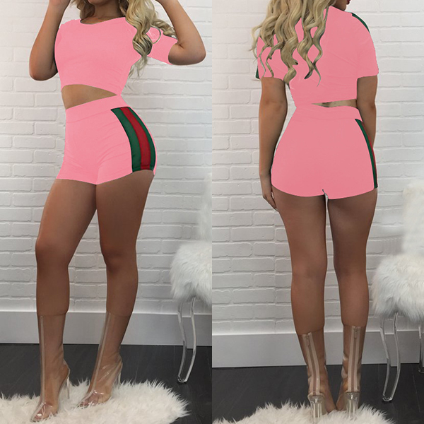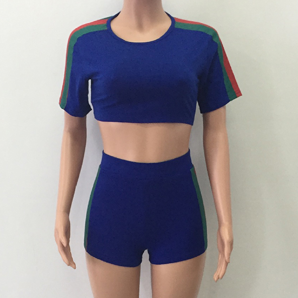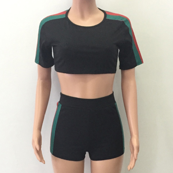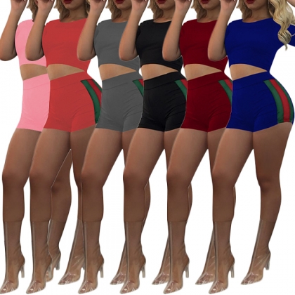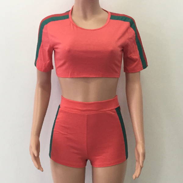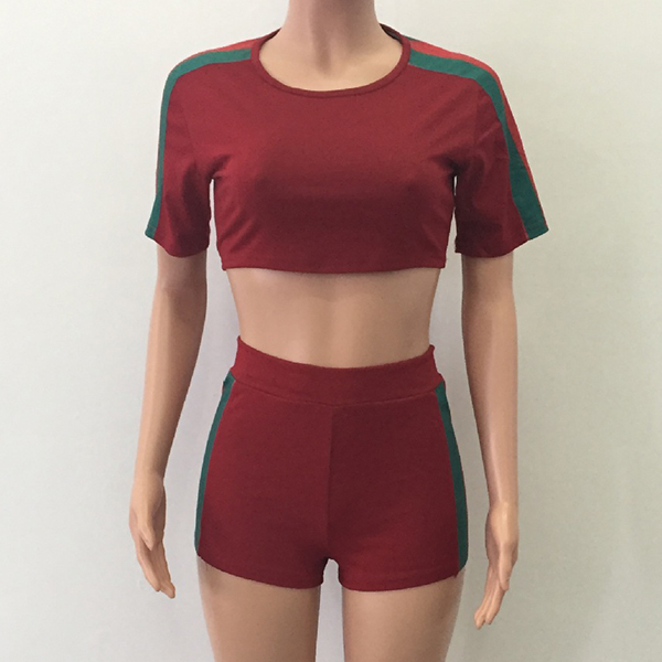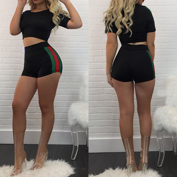Contrast color style,including a short sleeve crop top crop top and a high waist shorts,this two-piece set is your good partner