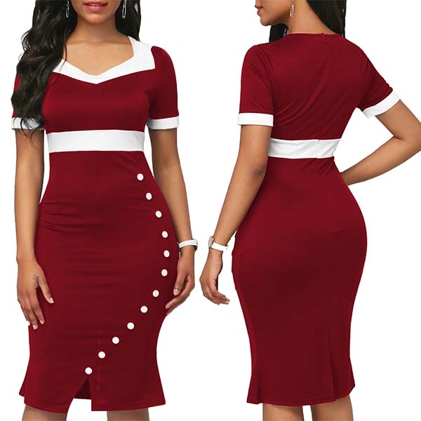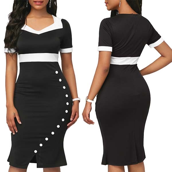 Contrast color style,finished with short sleeve and high waist design,this dress can take you to different