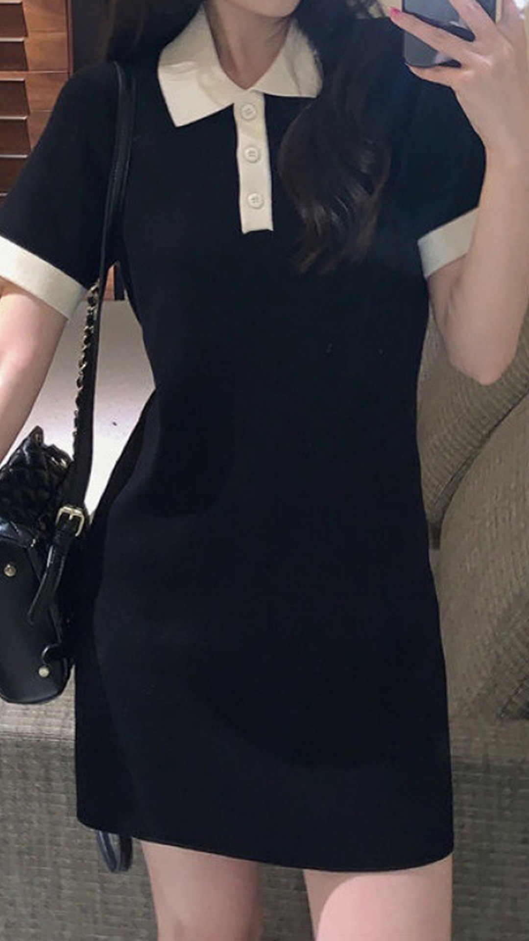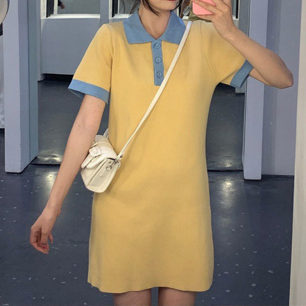 Contrast color style,styled with short sleeve,POLO collar and a fit silhouette,classic yet stylish. No matter for your workdaysor weekends or dating nights,this dress would be your perfect choice.