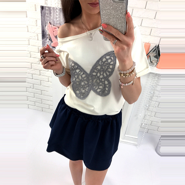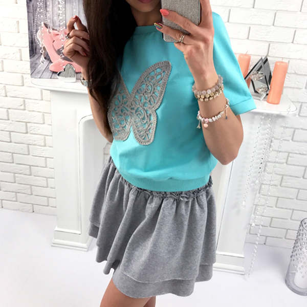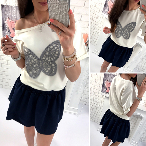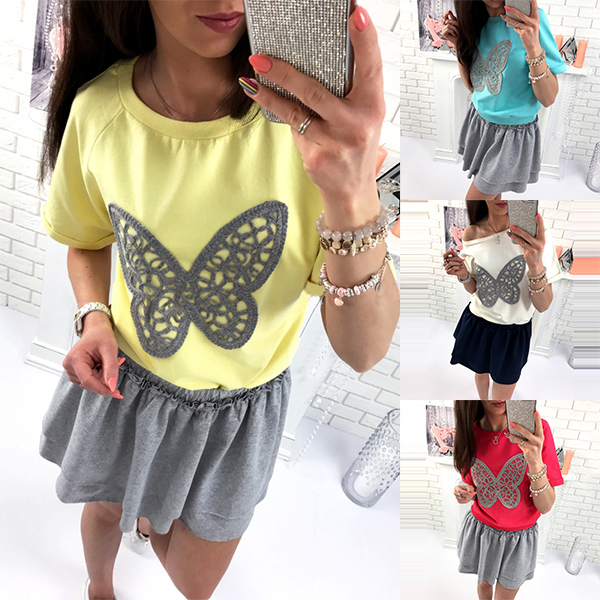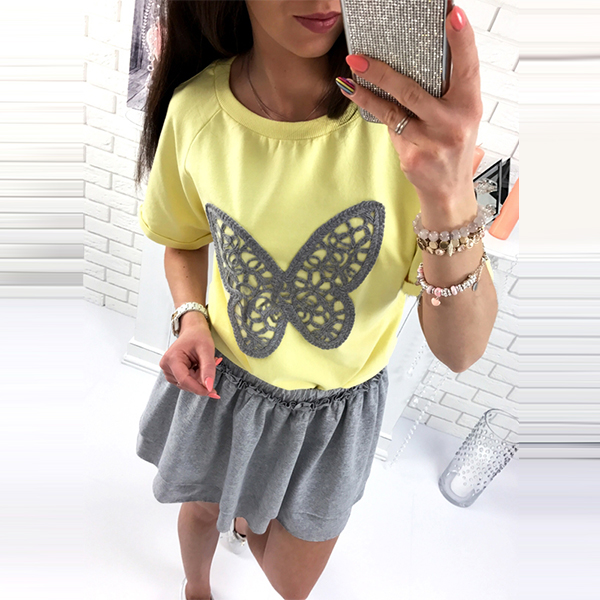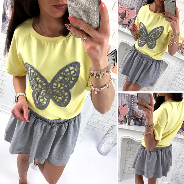 Have cozy and laid-back style on your casual days with this dress. Contrast color style with a patched butterfly pattern