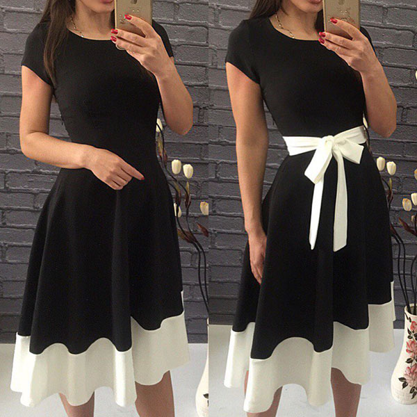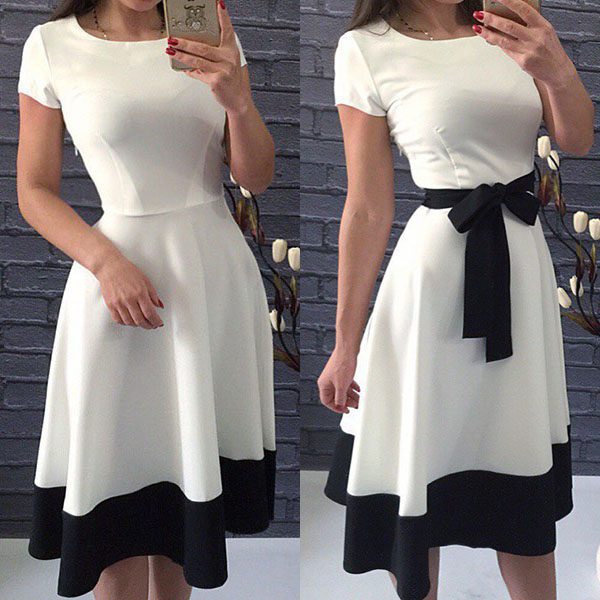 Brighten up your day with this elegant and stylish dress. Contrast color design makes it look not so dull and monotonous.