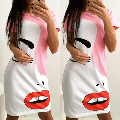 this simple yet chic dress. Features cute printed pattern,with short sleeve,round neck and cozy fabric.