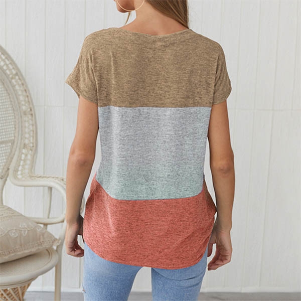 This t-shirt is designed with contrast color element,stylish and popular. Finished with short sleeve