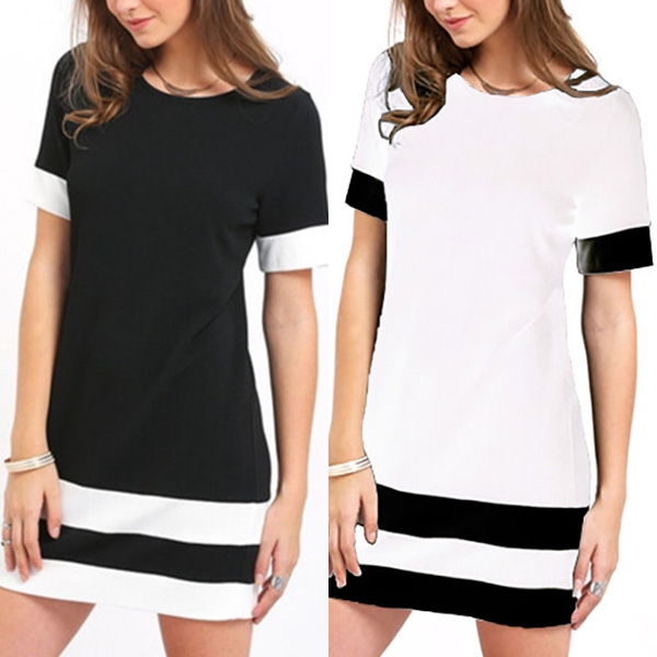 This t-shirt dress would be your wise choice on your lazy days. Contrast color design will break the simple