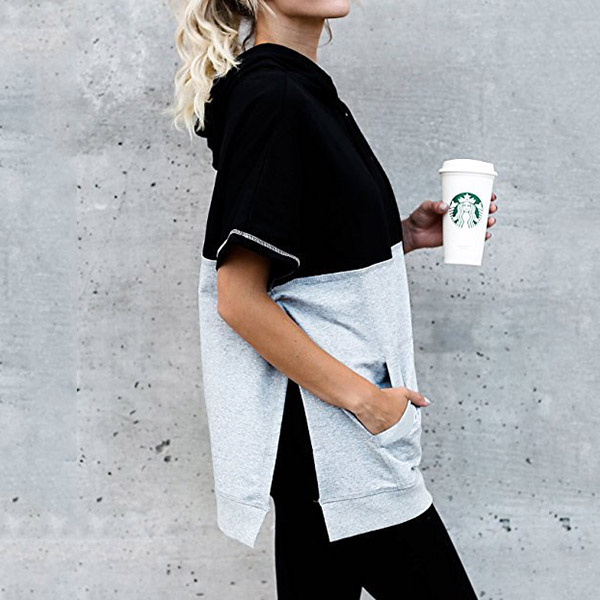comfortable day. The contrast color,slit hem and hooded silhouette not only enrich the design style,