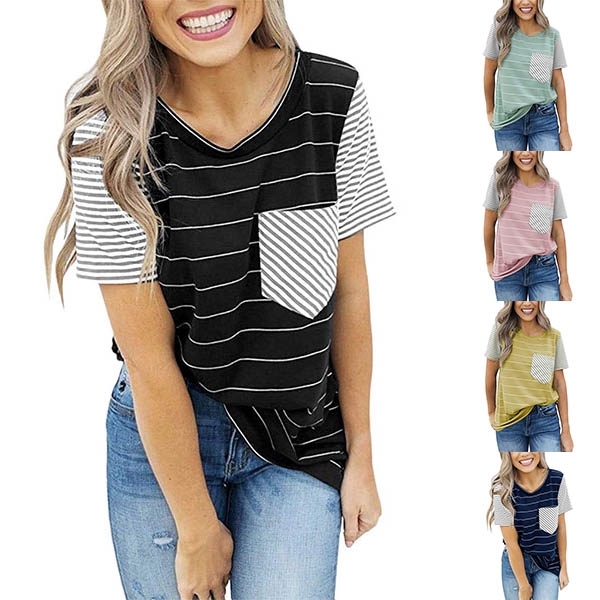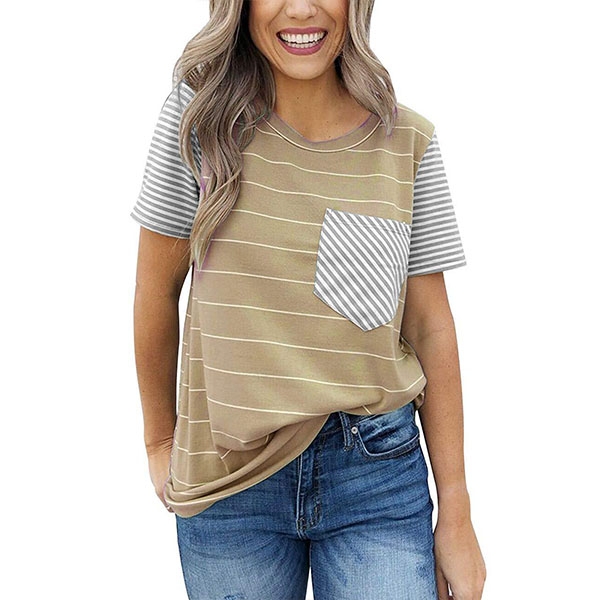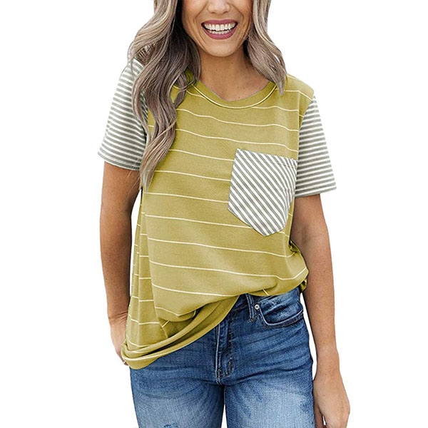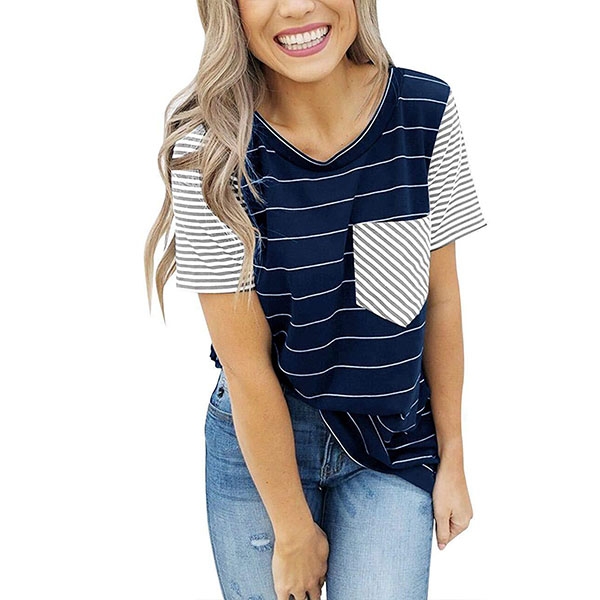 The striped element design makes it look stylish and popular. Finished with short sleeve,