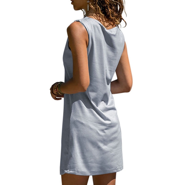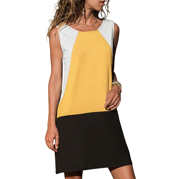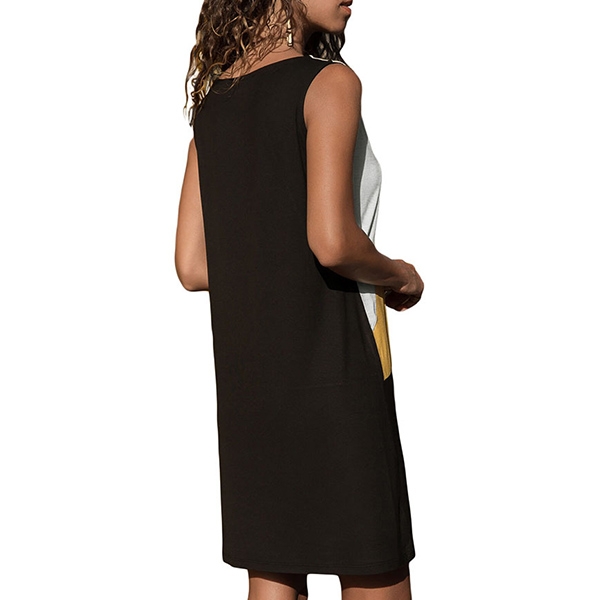 on this dress. Contrast color element design will enhance its charm. Finished with sleeveless,round neck