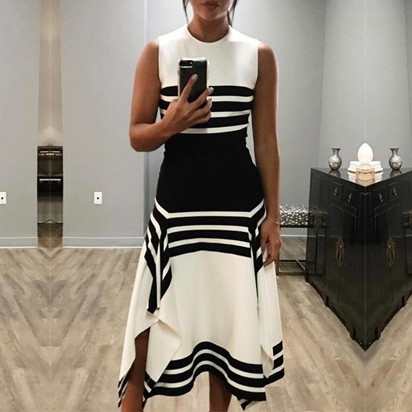 You can easily enhance your style with the help of this dress. Contrast color style,finished with sleeveless,
