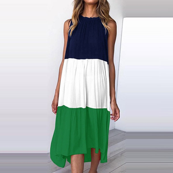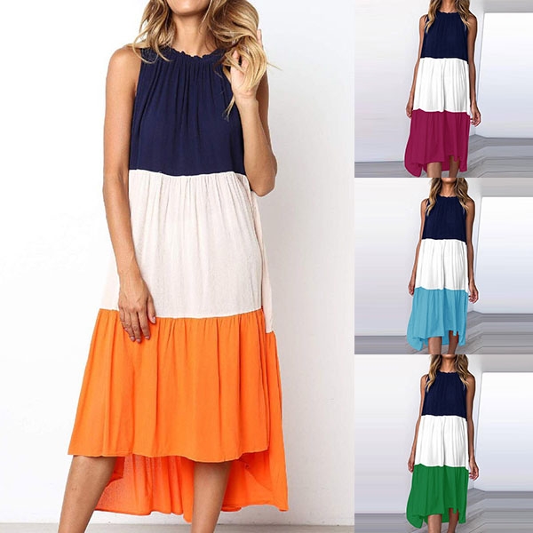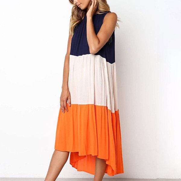 Hit the summer season with this stylish dress. Contrast color element design makes it look not