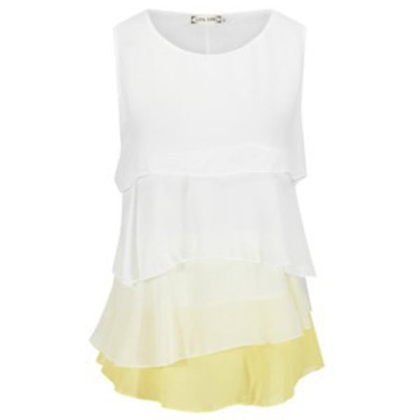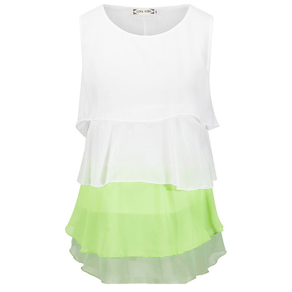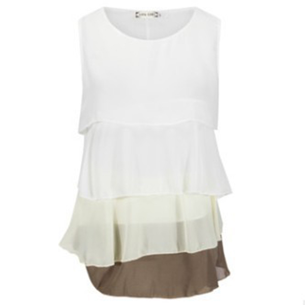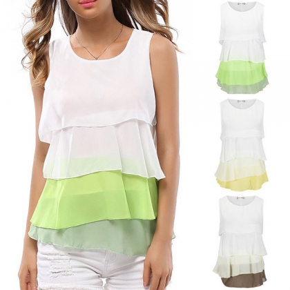 Slip into this chiffon top and you will have a sweet and fashionable look. Contrast color and multi-layer