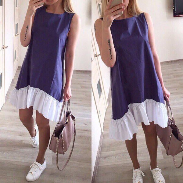 Don't like too complicated piece? Then this simple dress would be your dish. Contrast color style,designed with sleeveless,
