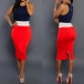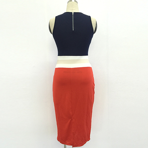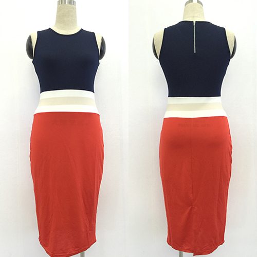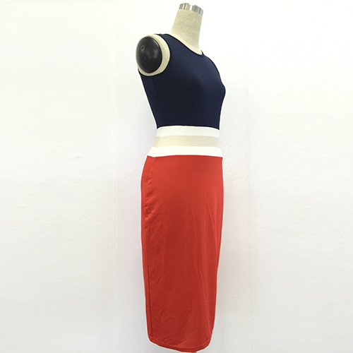 Contrast color style,designed with sleeveless,round neck and a super fit silhouette,this dress is a