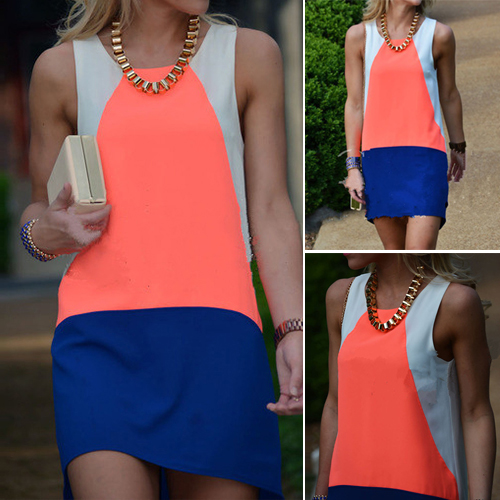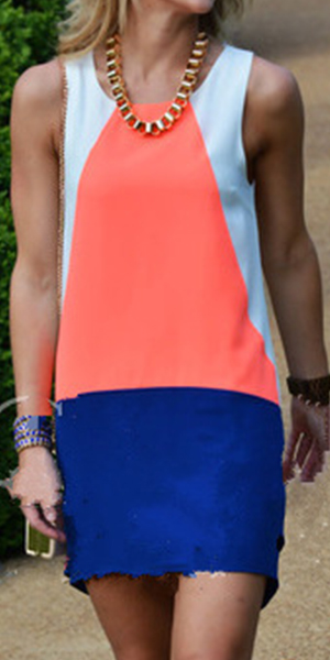 Hey,girls,update your style with this delicate and stylish shift dress! Contrast color style,