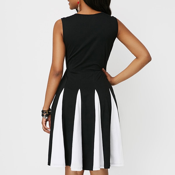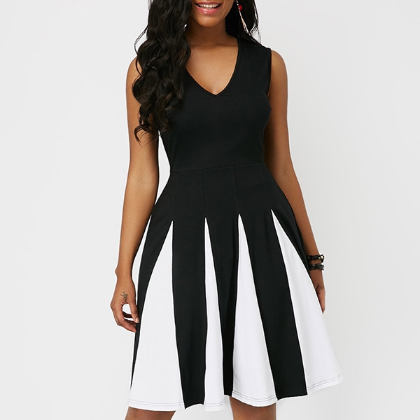 dates or weekend out. Features contrast color element,finished with sleeveless,v-neck and a clean silhouette,
