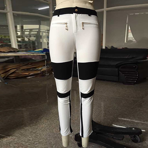 This pencil pants features contrast color style,crafted from soft and stretch fabric,