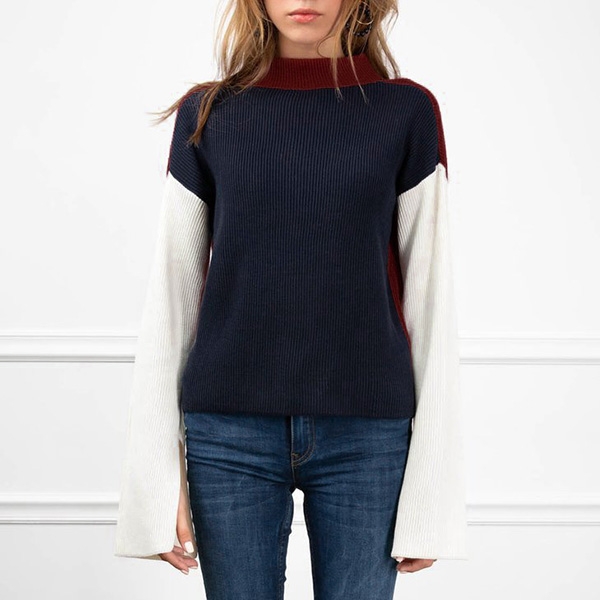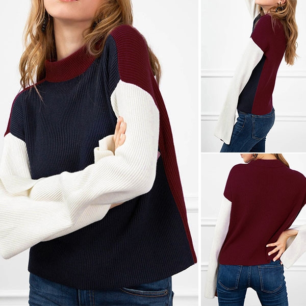 This knit top is designed with contrast color design,which breaks the simple and dull design style,