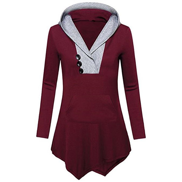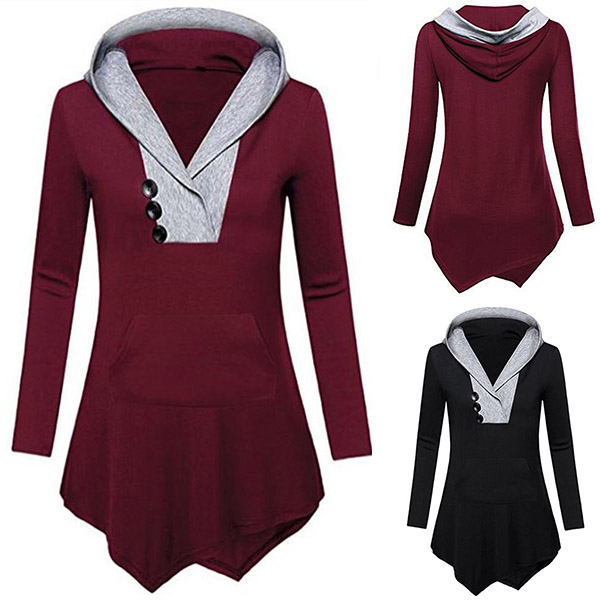 Contrast color style,finished with long sleeve,v-neck and irregular hem design,this piece of course