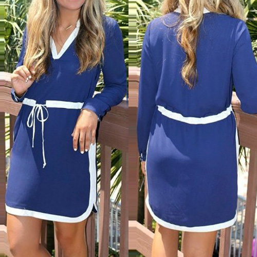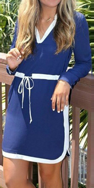 For a simple and stylish dress up,you can turn to this chiffon dress. It features contrast