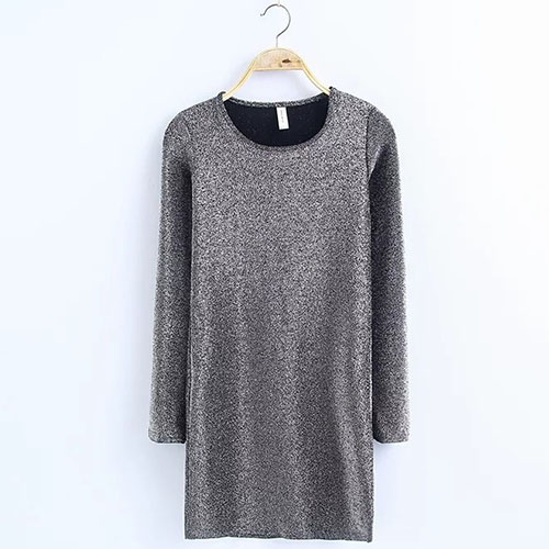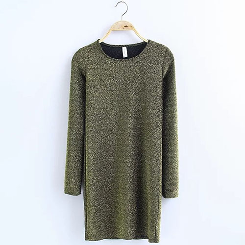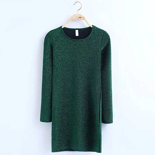 a stylish look. The dress features solid color style, with round neck and long sleeve patterns, casual and stylish.