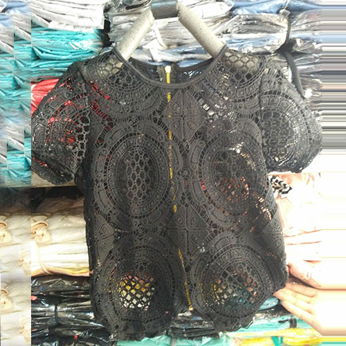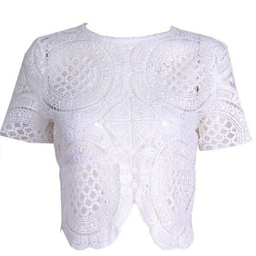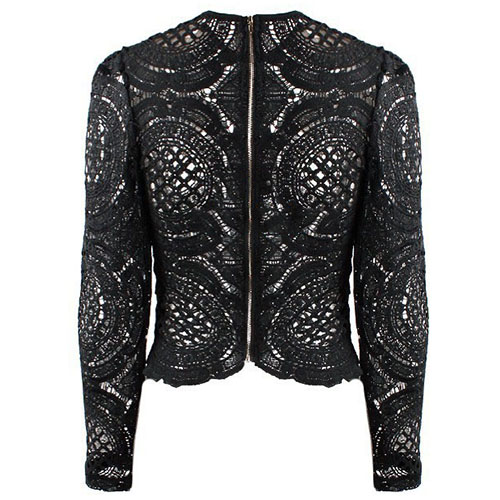 delivers. It's crafted from floral crochet, round neck and zipper back.