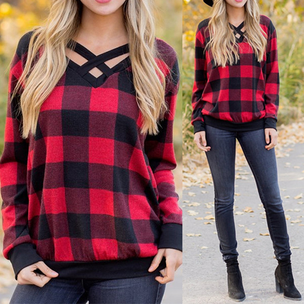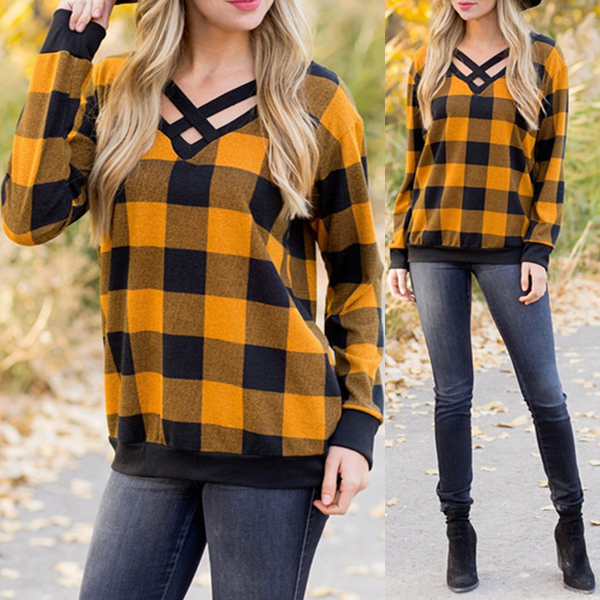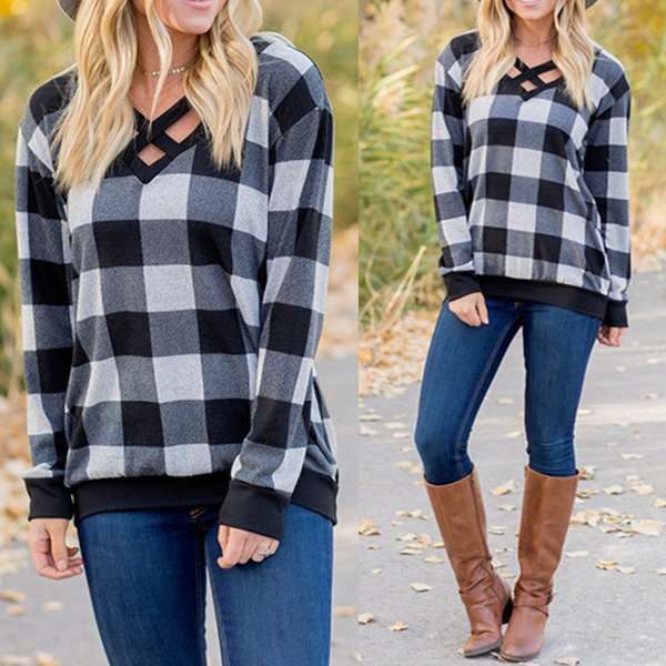 If you like plaid element,then this t-shirt may arouse your attention. Plaid style,accompanied with long sleeve,