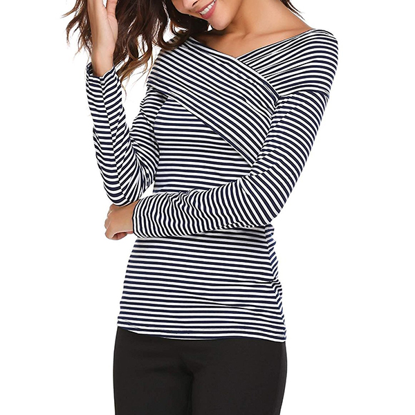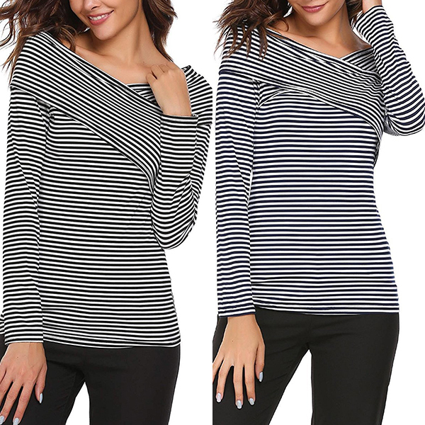Your casual daily style can have an instant boost once you wear this t-shirt. Striped style,designed with long sleeve,