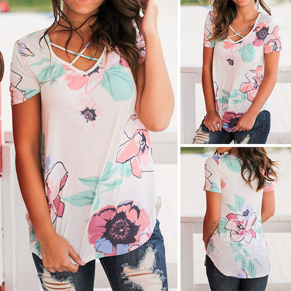 When it comes to a cozy yet stylish style,you can turn to this short sleeve t-shirt for help. Its vibrant floral print design lends you a sweet