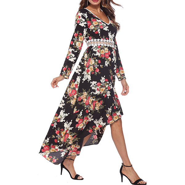 with deep v-neck,long sleeve and printed pattern, which can set off your silhouette.Lace spliced embroidered