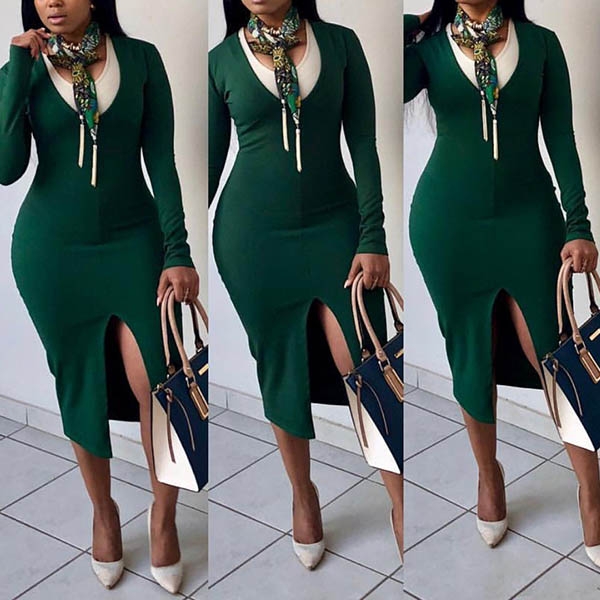 design can showcase your perfect curve. Finished with long sleeve and v- neck design,