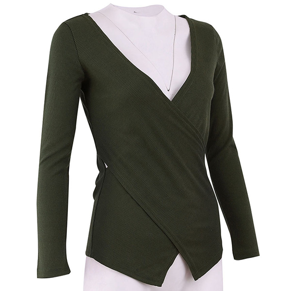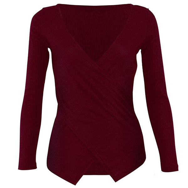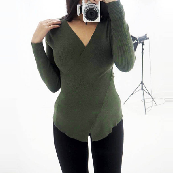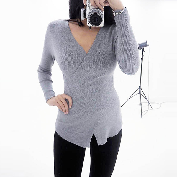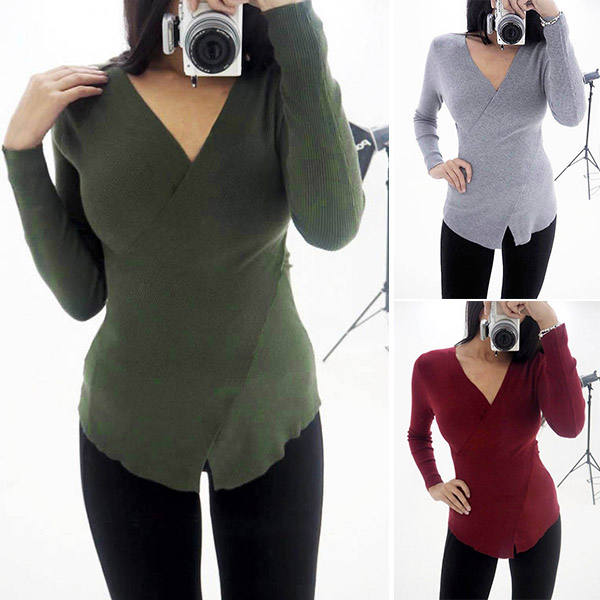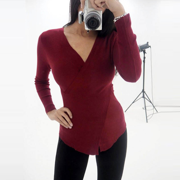 soft and cozy material woven,with deep v-neck ,long sleeve and slim fit,a small slit at the hemline of the shirt,