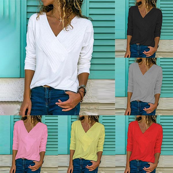 Hey,grls! Do you know what makes you beautiful? Solid color style,with long sleeve and v-neck,