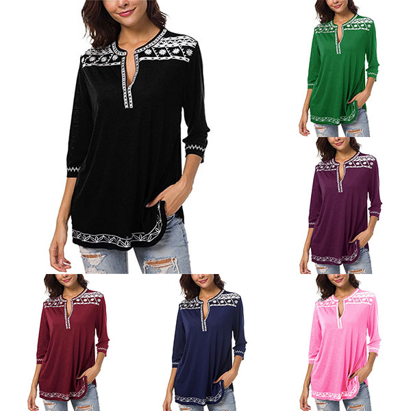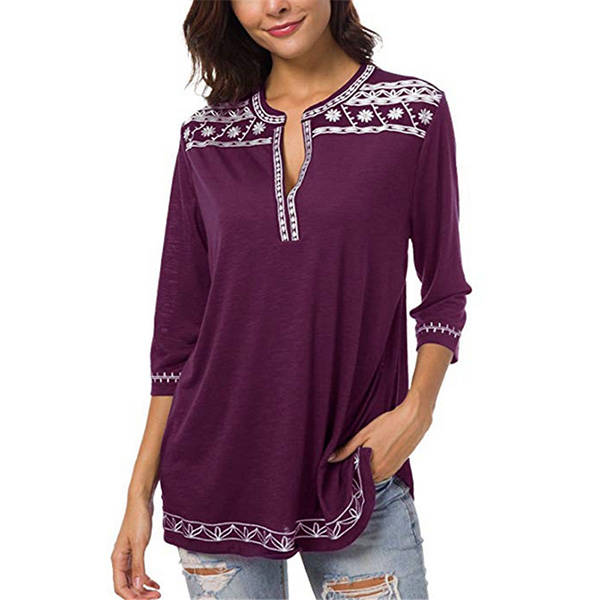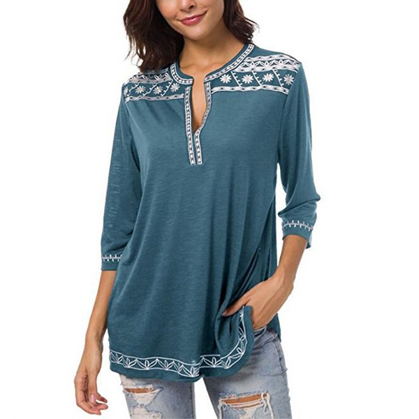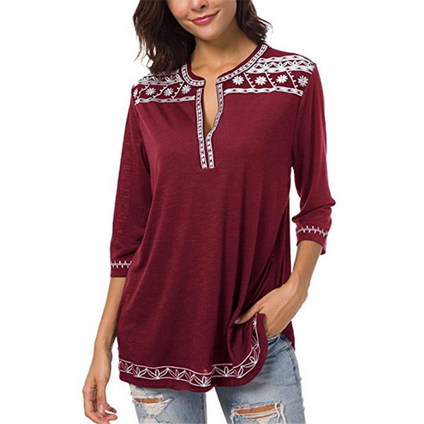 The shirt in a soft and cozy polyester material fabric woven, with v-neck, and long sleeve.