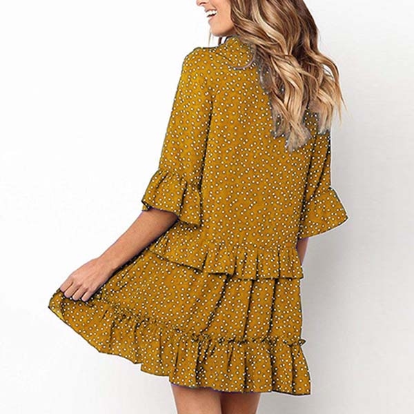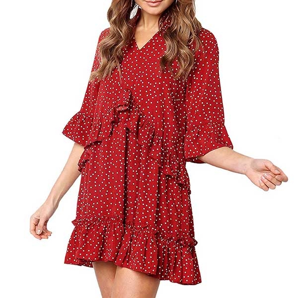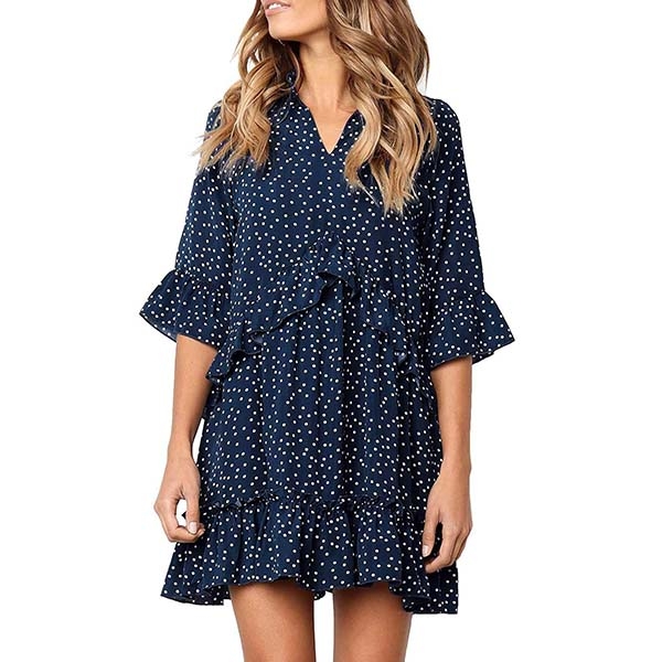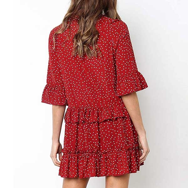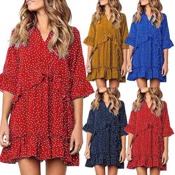 gorgeous and charming. Designed with short sleeve ,v-neck,lotus spliced and a wave points printed