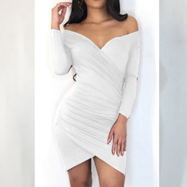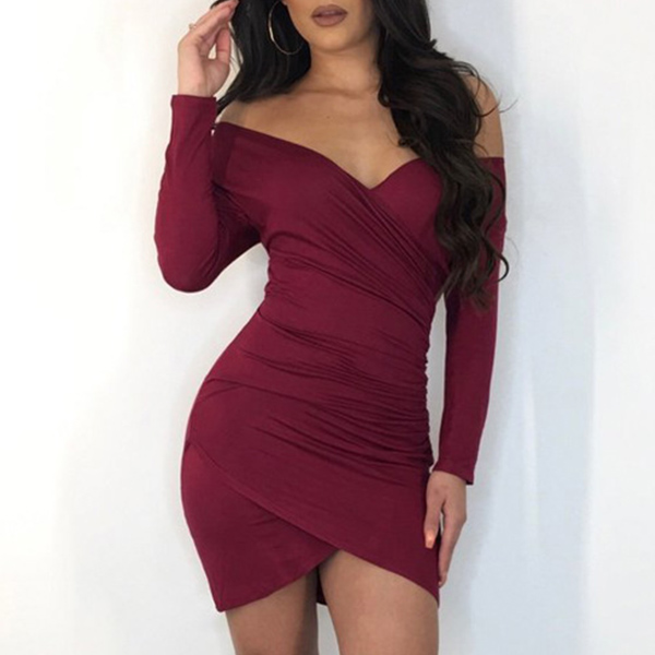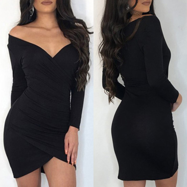 Fashionable dress always can help you add too much charm to you.Come with deep v-neck,long sleeve