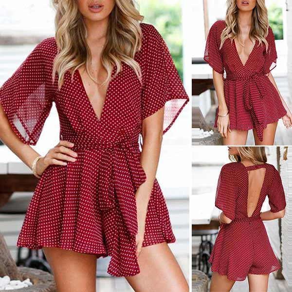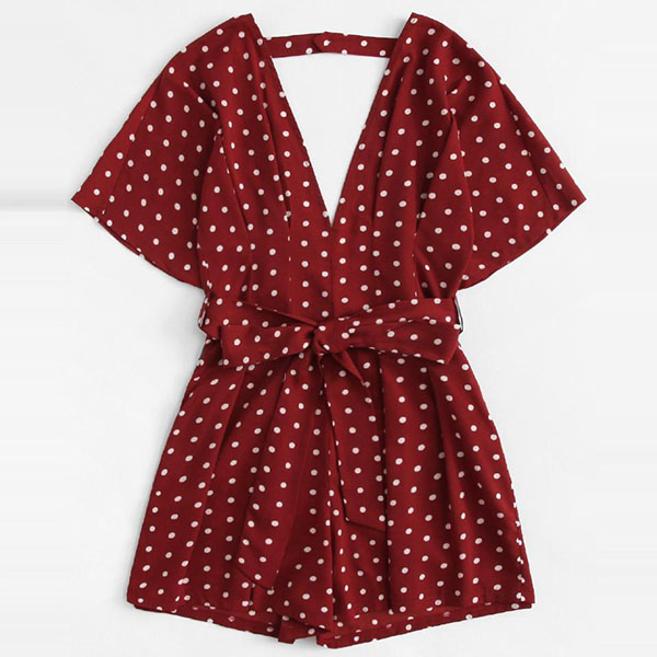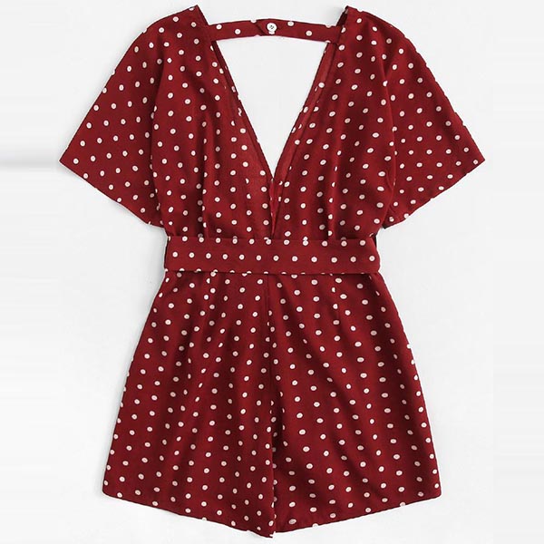 Deep v-neck,short sleeve and waistband,simple and concise, which can decorate your fashionable silhouette.