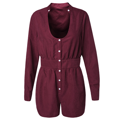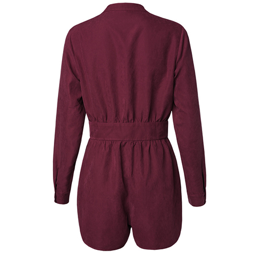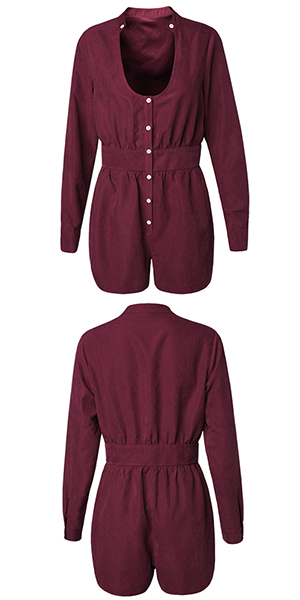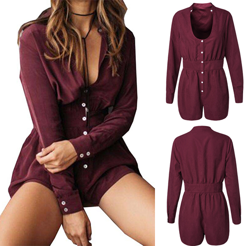 The jumpsuit is very special from others. It is completed with solid color and long sleeves deep V-neck patterns, casual