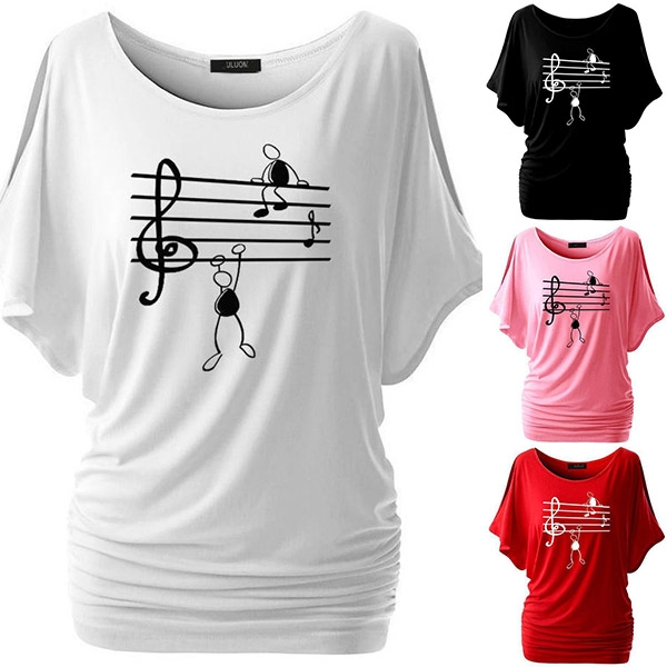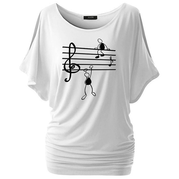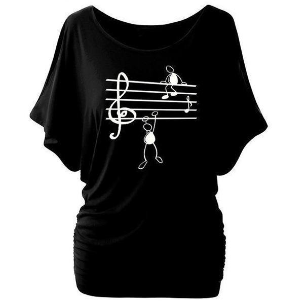 On your casual days,this t-shirt would be your wise choice. The dolman sleeve and musical