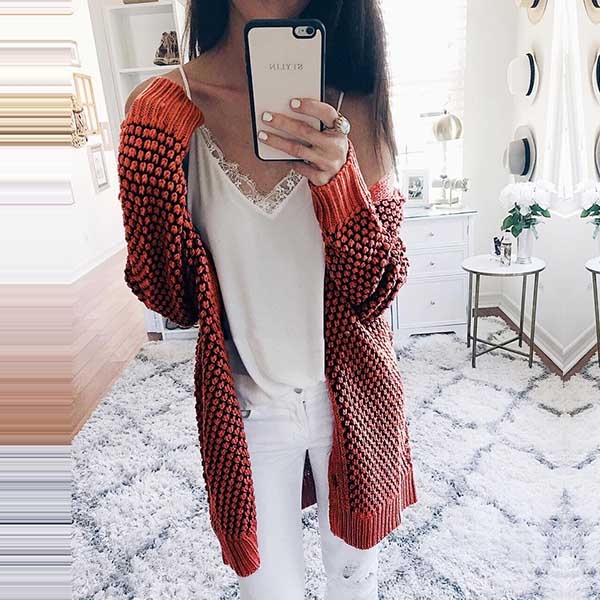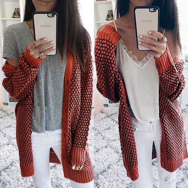 Finished with long sleeve,front buttons and a loose silhouette,this knit cardigan can keep you warm as well