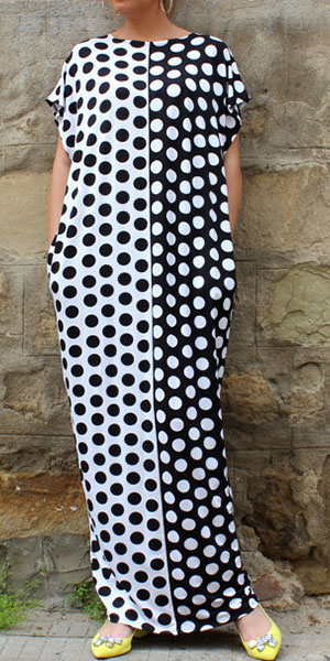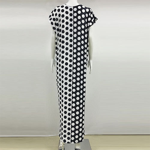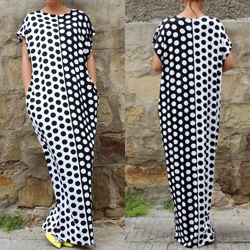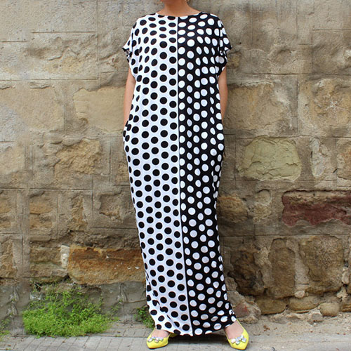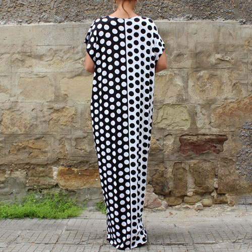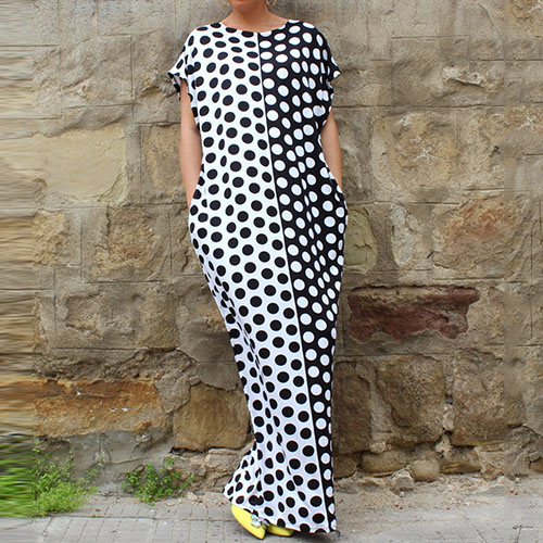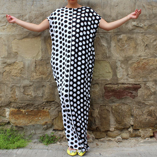 Dots printed style,with a round neck,a maxi length and a relaxed silhouette,chic yet stylish. Strolling on the street