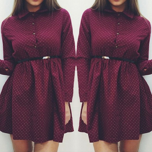 Boasting a pretty and warm claret color, equipped with round dots printed, lapel and single-breasted
