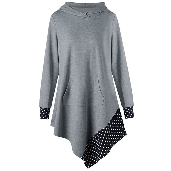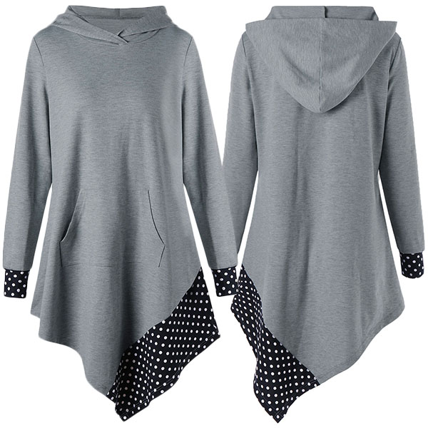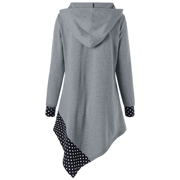 irregular hem,this wonderful piece can give you a cozy yet stylish style,while the dots printed spliced design