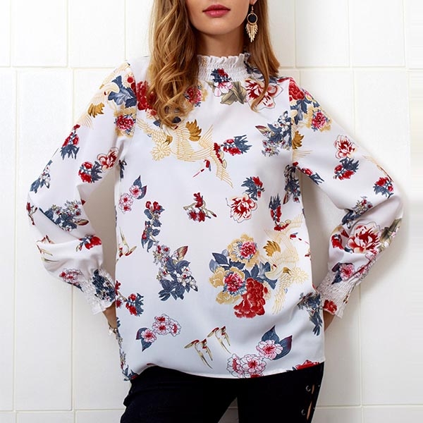 For those refined and chic wear, this long sleeve floral top easily offer you a wonderful look.