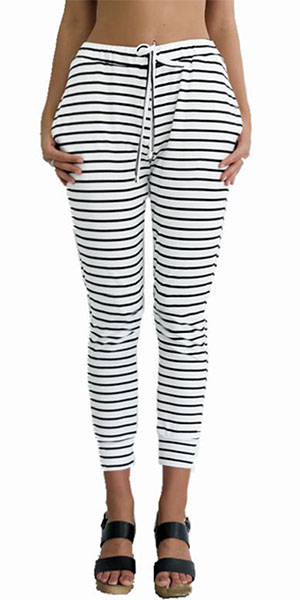 Striped style,crafted from soft and breathable fabric,with a drawstring elastic waist,this pants
