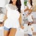 Comes with pure white color,finished with elastic waist and hollow out lace spliced design,