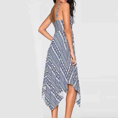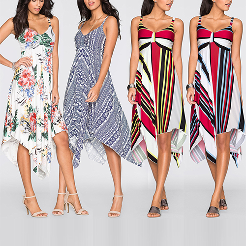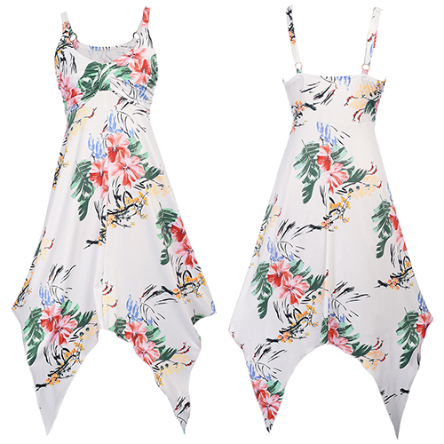 dress is styled with printed and sleeveless design, casual and stylish. The irregular hemline adds