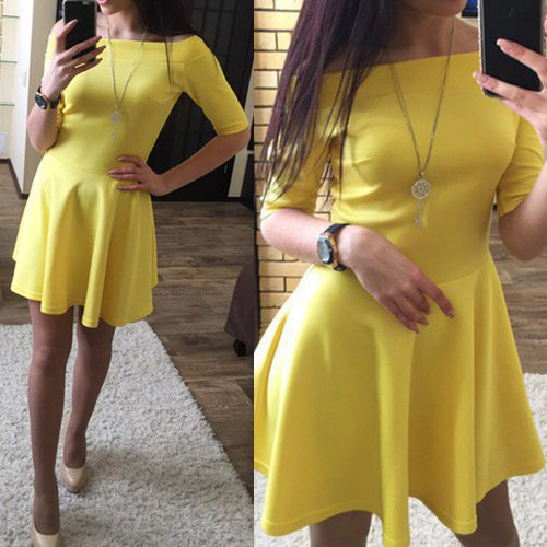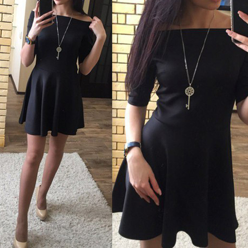 The dress would be your favorite for its elegant style. It is styled with solid color and off-shoulder patterns,