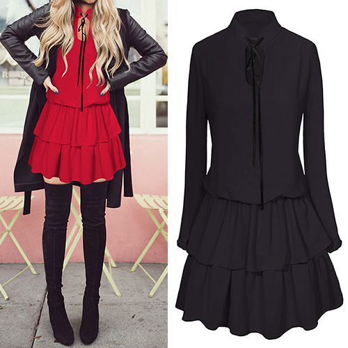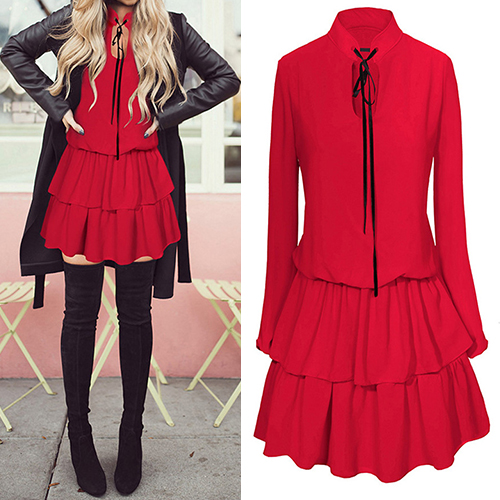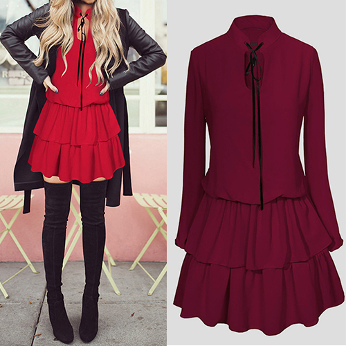 of feminine appeal and charming temperament. It features solid color and long sleeve patterns,