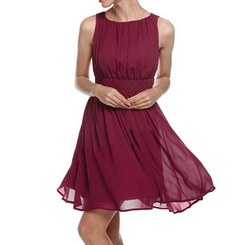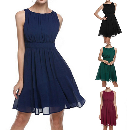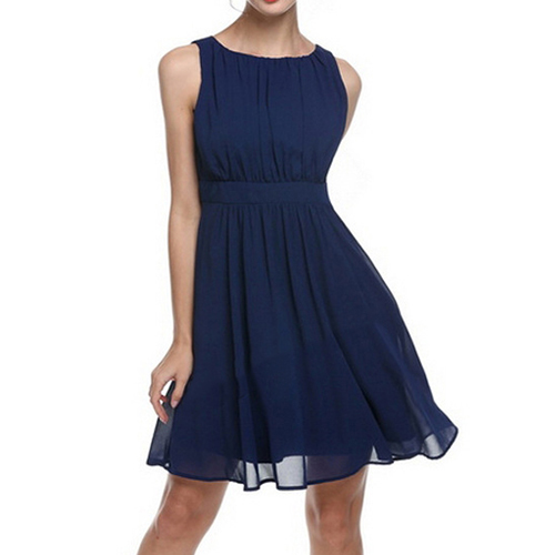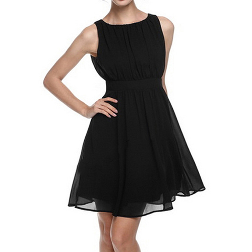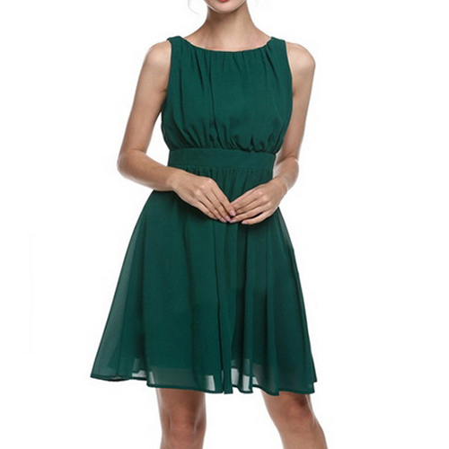 completely. It is outfitted with solid color and sleeveless patterns, chic and classic. The gathered waistline